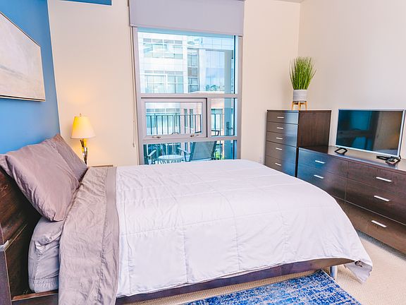 Modern, updated, and tastefully furnished unit located in the ICON building in the East Village neighborhood of downtown San Diego, directly across from Petco Park Baseball Stadium. The unit is in the heart of a vibrant and bustling neighborhood with plenty of great restaurants, coffee shops, bars, and parks, just steps away! Also walking distance to the Convention Center, Gaslamp District, Little Italy, and Seaport Village. Great option for executive housing, retirees, traveling nurses, digital nomads, or relocating employees/professionals.
