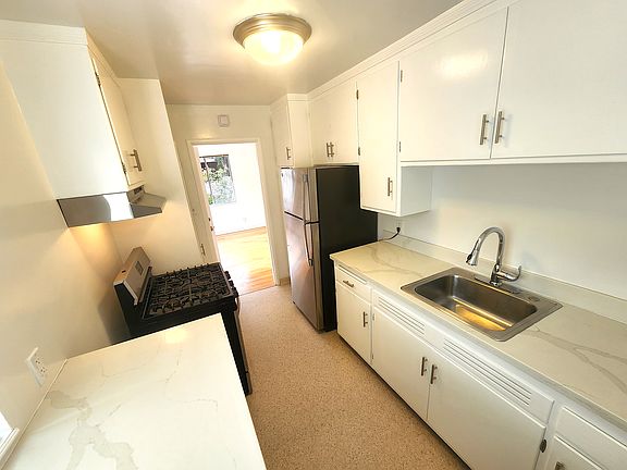 Charming ground floor 1 bedroom apartment in Gerstle Park neighborhood of San Rafael. Corner apartment is located in a quiet 4-plex on broad leafy quiet streets; this is a walking neighborhood. Bright and airy, with synthetic hardwood floors. Very clean with ample cabinet and closet space. Great spot in a quiet neighborhood, but a close walk to the action of many 4th Street restaurants, cafes and shops. (Downtown San Rafael is THREE blocks away, a 5 minute walk). Safeway and San Rafael Community Center a 7 minute walk. 5 minute drive to HWY 101 entrance. OFF STREET PARKING FOR ONE CAR. On site laundry. Small grassy yard for your enjoyment. Water and trash included, tenant only pays PG&E. This lovely, cozy little home feels bigger than 600sf, in an excellent, peaceful location. Photos are of a very similar model unit. Actual unit available is unit #1. Well behaved pets welcome, dogs under 20 pounds. NO SMOKING. 1 year lease. renter's insurance required. Landlord pays water and trash. Tenant pays gas, electric and internet/cable tv (if desired).