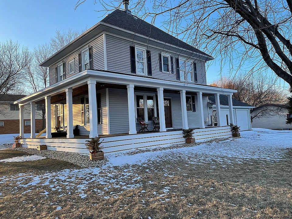 Full 2 story 3 bedroom 2 1/2 bath home with wrap around porch. Great neighborhood located 1 block west of pool and park. Upper floor has 3 good size bedrooms with large closets and a full bath. Main floor is open concept newly remodeled in 2018. Main floor 1/2 bath added in 2010 and updated in 2018. New cupboards floor to ceiling with all the space you will need. Large corner pantry and large island with more storage. New hardwood floor throughout whole main floor. Basement is fully finished with full bath/ laundry. 2 stall attached garage with propane heating. 10x12 storage shed/ playhouse with loft. Kitchen appliances are included and are newer with remodel with exception of the stove. Washer and dryer one year old and new hot water heater new this year. Call or message 712-441-5277