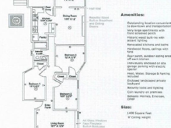 Ready to Rent! Clean and painted 3 bedroom apartment with formal dining room, front & rear enclosed porches PLUS private (covered) back deck overlooking fenced yard. One GARAGE space included with remote!! Beautiful woodwork, hardwood floors, 9 ft ceilings. Kitchen has new stove, built-in microwave, dishwasher & stainless steel refrigerator. New Quartz countertops with undermounted sink. Professionally managed 4-unit property in the heart of Oak Park, IL. Applicants must have good credit over 675 FICO. Small dog ok, under 30 lbs.