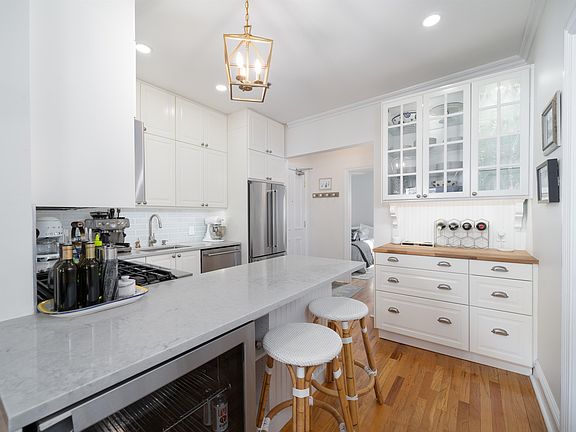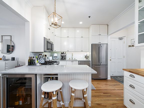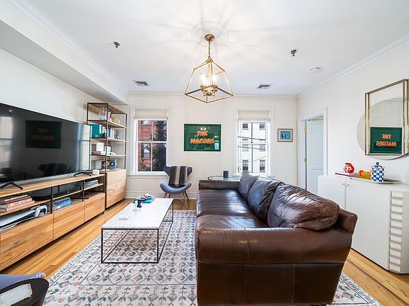 coveted Hamilton Park neighborhood of Downtown Jersey City. Situated in a well-preserved 4-unit historic brownstone, this home occupies the entire second floor, offering privacy with no shared walls. Inside, you'll find custom closets in each bedroom and a versatile den perfect for an office, nursery, guest room, home gym, or more. The modern kitchen features quartz countertops, under-cabinet lighting, custom backsplash, KitchenAid stainless steel appliances, a Viking beverage fridge, and double-height white cabinetry for ample storage. The updated bathroom boasts elegant marble floors, custom tile, new fixtures, a