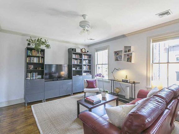 This bright and distinctive 2 bedroom condo with parking is privately perched on the top floor of a spacious 25 foot wide townhouse in the Hamilton Park historic district, one of the most desirable and family-friendly neighborhoods in downtown Jersey City. From the moment you walk into the building, with its large double entry and generously proportioned original staircase and balustrade, you feel the quality and elegance of this historic home. The three large windows in the front living room and den area with more windows in the back in each of the bedrooms flood the space with natural light. Key features of the home include central A/C, gorgeous hardwood floors that run throughout the space, as well as architectural details such as crown molding. The unit wonderfully blends its traditional elements with a contemporary aesthetic such as the clean, white kitchen and an updated modern bathroom. Extra storage, shared laundry room/outdoor patio, and its very own parking spot accessible via remote control. All of this packaged with a LOW monthly maintenance makes this a picture perfect home. The building is just a one block from Hamilton Park and the neighborhoodâs many wonderful shops and restaurants.