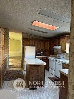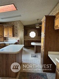 New roof and skylights. The foundation is certified, and title has been eliminated! This manufactured home floor plan has a great flow, with separation of primary bedroom and private bathroom and two other bedrooms with a shared bath. Vaulted ceilings give a spacious feeling in the great room living space. Kitchen has plenty of storage with an island to make meal prep a breeze. Cozy breakfast area with built in buffet. Large lot, with a variety of fruit trees, Aspen and evergreens on this completely fenced lot in a tucked-in location, close to downtown, marina and city parks.