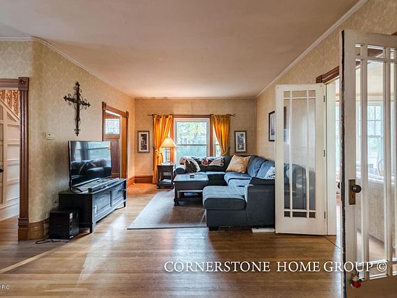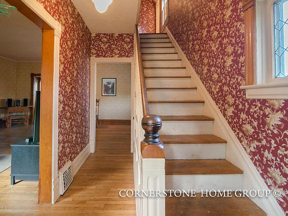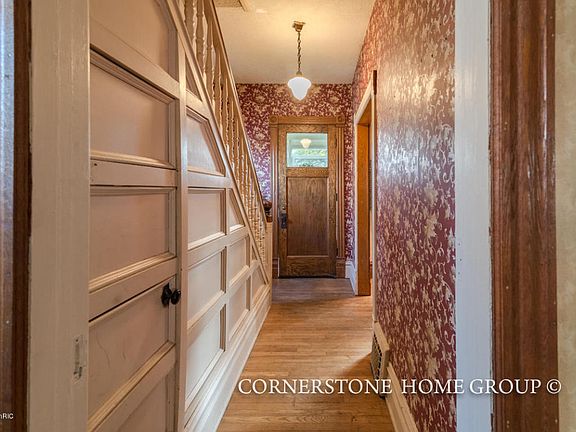 Charming victorian home in the heart of Belding! Interior highlights include original molding and woodwork, hardwood floors, bright and welcoming sitting room with wood burning fireplace, classic victorian style bathroom on main floor with pedestal sink and claw foot tub, beautiful dinning room, leaded glass windows which offers stunning sunset light, spacious master bedroom, plentiful storage and back stairwell from kitchen to upstairs bedroom. Exterior boasts recently installed insulated siding with a lifetime warranty, hand crafted landscaped yard with Japanese Maple, Lilac, Dogwood and Smoke tree, corner lot with semi private backyard and attached garage. Close to walking trails along the Flat River and within walking distance from downtown Belding! Call to schedule your showing today!