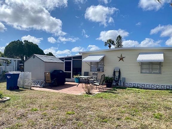GREAT PRICE IN COLONY COVE! Don't waste any time seeing this - it won't be on the market long. This is a well-maintained FULLY FURNISHED and newly landscaped home in a great location. Community pool, shuffleboard, karaoke and bingo right is around the corner Upon entering this home, there is a warm and sunny Florida room that is perfect for people-watching during the day or relaxing with friends in the evening. There is a very nice sized kitchen with plenty of cabinet and counter space. The dining area is open concept to the cozy living room with an overhead ceiling fan and cute beachy furnishings. There is a sunny room/area in the front of the house that is perfect for a craft room or office space. Master bedroom has a double closet and overhead ceiling fan. The full bath is conveniently located right across the hall. Guest bedroom (which could also be an office or den) is also amply sized with a double closet and overhead ceiling fan. There is a separate storage shed that has more than enough room for your garden tools and beach toys. Large patio area in the back of the house for sunning and grilling. You will be sure to enjoy the fruit trees (tangelo, avocado and lime). Lot rent is $825.24 and includes water, lawn care, sewer and trash, and all the amenities of the park. Colony Cove is a 55+ community with 5 clubhouses, 5 pools, a fitness room, library, game room, billiard room, pavilion and shuffleboard courts. Pet friendly offering a large dog park with views of the Manatee River. In addition, this park also has a private boat dock with fishing along with a marina (slips available!) with Gulf access. Close to restaurants and shopping areas making it convenient for seasonal and full-time residents. Please do not miss this opportunity! All listing information is deemed reliable but not guaranteed and should be independently verified through personal inspection by appropriate professionals. Integrity Mobile Home Sales cannot guarantee or warrant the accuracy of this information, measurements or condition of any property. Measurements are approximate. Lot rent subject to change.