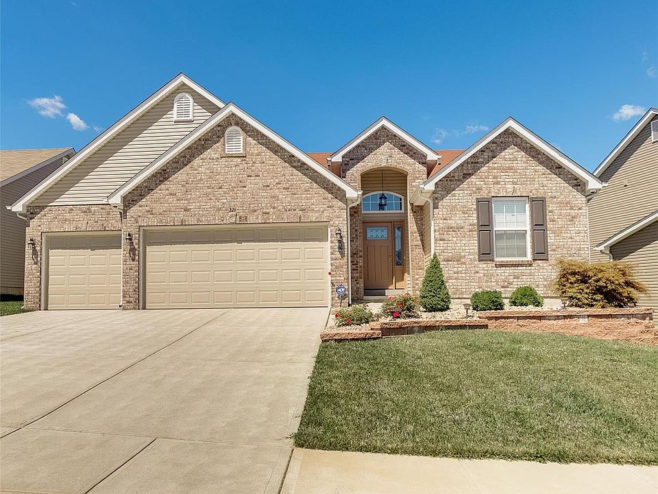 Welcome to this pristine 2 year young ranch that offers a three car garage, brick front, covered front porch and divided bedroom floor plan. Wood entry foyer has 12 ceilings and a transom window over the custom front door. The delightful kitchen boasts 42 maple cabinetry with crown molding, granite counters, back splash tile, cabinet pantry, breakfast bar, stainless appliances and an abundance of counter space. The breakfast atrium door bay walks out to a 12 x 14 covered patio. Beautiful main floor master offers an octagonal ceiling, four window bay and walk in closet. Large master bath includes custom tiled shower with seat, double bowl vanity and linen closet. Professional landscaping front and back with plenty of shrubs and flowering trees. Home security system including cameras. Located in Jefferson Countys fastest selling subdivision, Amberleigh Woods. A lot of common ground, community pool and gazebos. Hurry...this home will not last!