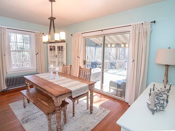This charming bungalow-style home located in central Rehoboth sits on a 2-acre wooded lot. Cozy yet spacious, this unique home is loaded with character and thoughtful details inside and out. Located on the first floor, the large master bedroom features two bonus spaces, including an office or reading nook accessed via spiral staircase. Two spacious bedrooms with a shared half bath are located on the second floor. Gather around in the bright and open living room with a fireplace, adjacent to a versatile three-seasons enclosed porch. From the formal dining room off the kitchen, you can also access two sprawling decks with total wooded seclusion most months of the year. The rear entrance features a great catch-all mudroom before entering into the light and airy welcoming kitchen. Zoned for residential and commercial, take advantage of this location with a detached space, previously used as a photography studio. If farm life is for you, come see this farm friendly property today!