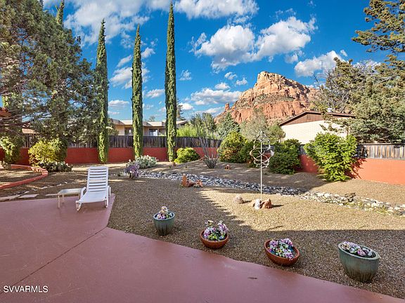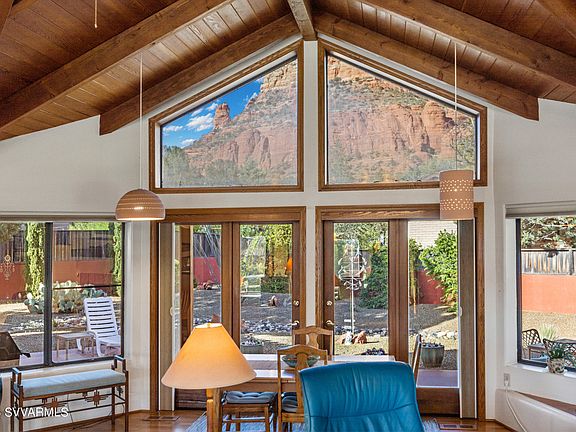 Experience the magic of Sedona with stunning red rock views of the majestic Elephant Rock, Twin Buttes and famous Cathedral Rock. Featuring 3 bedroom 2 bath split bedroom floorplan with cozy office all on single level. Strikingly beautiful wood/beam ceiling. Custom built book cases in living room and guest bedroom. Large windows and skylights to bring in the natural light. Beautifully landscaped with a fenced backyard to escape and relax and take in the red rock scenery.