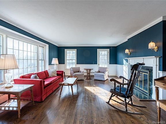 This Classic Colonial sits atop four acres of serene, rolling hills with a picturesque view. The home adjoins Middlebury Land Trust to give even more tranquil settings. Once you enter this 1955 Center Hall Colonial you are greeted by lovely woodwork and hardwood floors throughout. A formal living room frames the outdoor views with the picture window and marble fireplace. Host special occasions in the light and bright formal dining room. The eat in kitchen has plenty of space to meal prep and gives access to the laundry room. The heated sunroom is a great spot to enjoy the outdoors while staying warm. A cork lined den features a wet bar and built ins, making this a perfect retreat at the end of a long day. The upstairs hallway has a grand feel and gives access to the four large bedrooms each with a jack and jill bathroom. One of the full bathrooms has been recently renovated. Plenty of storage with built in drawers and walk-in closets. Call for your private showing today!