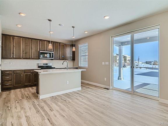 Check out this brand new, two-story, single-family home delivering March 2024 by Brookfield Residential! 3 bedrooms, 2.5 bathrooms, FULL UNFINISHED BASEMENT for your future expansion, large, covered patio BACKING TO OPEN SPACE and an oversized two car garage w/ 8ft garage doors truly sets this home apart! This home features an open floor plan, large kitchen with quartz countertops, gas range, and luxury vinyl plank flooring. The home has a large owners retreat with private bath, two secondary bedrooms with a shared bath. Complimentary MOVE-IN PACKAGE includes washer/dryer, fridge & blinds. With everything important to you right outside your front door, Brighton Crossings is the perfect community for you to gain the luxury of time save and time enjoyed. Interconnected parks and trails. Tennis, pickle-ball, basketball courts and Venture Center and Water Park. A 7,000 square foot award-winning fitness center and gathering facility. Complete with state-of-the-art fitness equipment, flex rooms, and two pools. Photos shown are from a completed home. Colors and selections may vary.