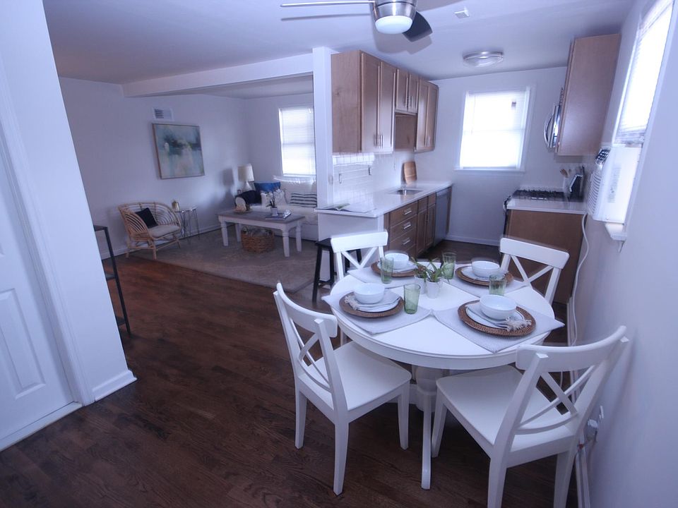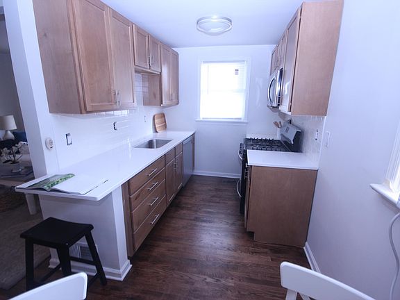 NO FEE! Recently renovated bright end unit in clean, quiet building with private entrance. Features NEW quartz kitchen with S/S appliances open to dining and living areas. New tile bath and spacious bedroom. Offers good closet space, laundry facility and new hardwood floors. Small pet considered. Plenty of off street parking! Not in a flood zone. Shops, park and NY Express bus #165 at the corner. Located in Bergen County near Fort Lee, Leonia, Palisades Park, Ridgefield Park, Fairview, Ridgefield, Teterboro, Lodi, Hasbrouck Heights