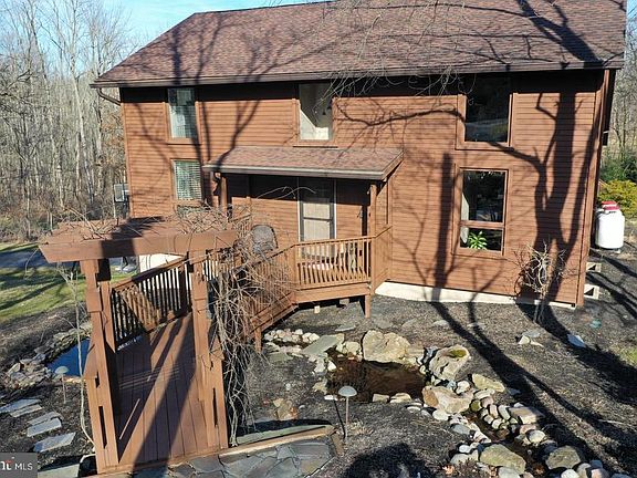 Absolutely stunning and well maintained 3 BR/2.5 BA cedar contemporary style home on 2.5 acres in West Hanover Twp w/1st Floor Master Bedroom! The open floor plan with hardwood floors on main level features family room with soaring ceilings, gorgeous floor to ceiling stone fireplace, oversized windows and two sliders to allow natural light to flow throughout the home. Kitchen with updated stainless appliances has solid-surface countertop w/ seating area and opens to dining area with an interior garden with water feature for tranquility! Master bedroom has private full bath with tiled walk-in shower, walk-in closet and slider to access the newer wraparound rear deck ('17) with stone fireplace for those cozy evenings when entertaining among the peacefulness of the private rear yard. Two additional bedrooms on 2nd level with full bath and also a loft area that overlooks the family room. Multi-level deck walkway with waterfall and fish pond greets visitors as they enter from the front porch. Roof '09, Newer water system w/UV light, HVAC system '12. This is the one you've been waiting for!