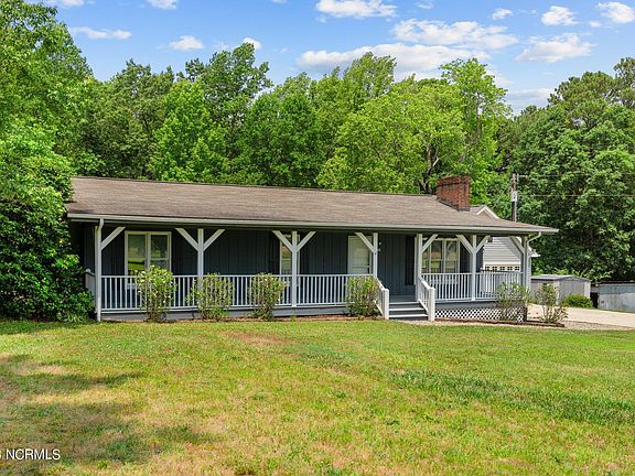 The exterior exudes charm with its classic wood siding, providing not only an aesthetic appeal but also an extra layer of protection. As you approach the property, a covered front porch spans the entire width of the house, inviting you to relax and enjoy the serene surroundings.