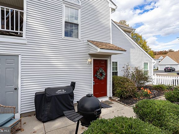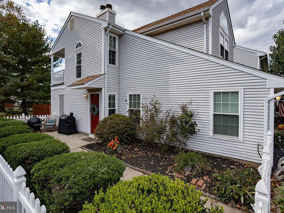 Don't miss this spacious Toll Brothers end-unit on the 2nd floor in Birch Hollow! This 3-bedroom, 2-bath home features an open floor plan and an updated eat-in kitchen. The large living room includes a gas fireplace, vaulted ceilings, and plenty of natural light. The primary suite boasts a walk-in closet and an updated private bath. Two additional bedrooms, both with large closets, offer plenty of space for guests or family, with the third bedroom currently used as a family room/office. Both bathrooms have been upgraded. Step outside to your private 8x8 covered balcony with peaceful, unobstructed views. The home also includes an attached one-car garage, a fenced yard perfect for pets, and a driveway for convenient off-street guest parking. Additional features include chair rail, crown molding, recessed lighting in the primary bedroom, and an exterior storage room. The HVAC system has been updated, and the roof is newer. Birch Hollow offers great amenities, including a swimming pool, tennis courts, a playground, and a clubhouse. Conveniently located just minutes from I-295, Route 130, and the NJ Turnpike (with access to the PA Turnpike), it's a short drive to Joint Base MDL and only 20 minutes to Hamilton NJ Transit for NYC commuters. Act quickly—this one won't last!