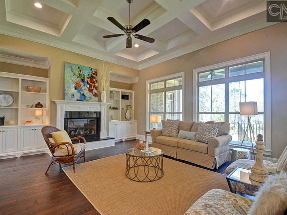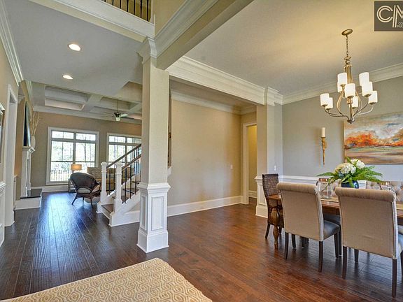 Sitting on a large lot overlooking the golf course, this tastefully designed home is ready to move in. Upon entering through the covered front porch, you are greeted by the double height foyer, formal dining room, and drawn into the main living area. The open concept floor plan allows for a seamless transition between the living room and the gourmet kitchen, which comes complete with granite counters, gorgeous tuxedo cabinets, stainless steel appliances, a bar and an eating area. The first floor master suite boasts a vessel tub, a spa-like glass shower, and a custom walk in closet, as well as direct access to the shaded back porch. The second floor media room provides a great additional living space and features a wetbar.