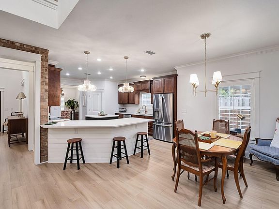 Step inside this recently renovated Botany Bayou home and be welcomed by a dramatic two-story foyer with soaring 20-foot ceilings, an open staircase, and a light-filled living area accented by a striking brick feature wall. The open floor plan is designed for gathering, with the upstairs hallway overlooking the main living space to create a warm and connected feel. A bright formal dining room fills with natural light and provides the perfect setting for family dinners or entertaining guests.The living room opens seamlessly to a large kitchen--the true heart of the home--with a breakfast bar, center island, abundant cabinetry, and a generous walk-in pantry, creating both warmth and functionality for everyday living. The large primary suite on the main level is a private retreat with a newly renovated bath featuring dual vanities, a soaking tub, and a separate shower. Also on the first floor, a second bedroom with its own updated en-suite bath provides comfort and privacy for family or guests.
