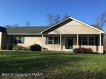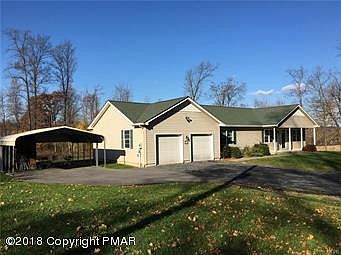 Look no further for your private location! Newer Ranch built 2008 offers privacy next to open rolling farmland yet lots of trees embrace this pretty 1 acre lot. Nice open floor plan, master bed and bath at one end, and (2) bedrooms and bath at the other end. Airy and open living room, eat-in kitchen sits centrally located. Doors from the kitchen walk out to deck that overlooks the entire backyard. Deck roof with a roll out awning for shade. Full basement could offer more living space. Huge (2) car garage and separate (2)car carport. Nothing to do but move in. While being private this home is minutes from shopping and 4 miles to Rt 80.