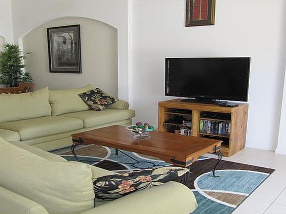 Exclusive Highgate Park home with elevated south facing aspect which is not only very private but also affords raised views of forests to the south west. A 4 bed 3 & half bath home with extended deck for pool and spa, has a spacious covered lanai for covered dining and outside bath and shower. Florida glass to all the lower panels of pool screen and to half the side tops provides complete privacy from neighbors. Home is furnished with luxurious tiled floors in the living, dining and kitchen area, interior designer window dressings all around the property give a luxury feel. The master has large bath with oversized walk-in shower and spacious closets. Private doors also give quick access to pool. Second master adjoins bath 2. Guest bedrooms again have ample closet space and share a 'Jack & Jill' bath. The open plan family area consists of Kitchen, Breakfast Nook, Family Lounge and Dining area and a fully equipped kitchen, premium appliances and access to the lanai. This home comes complete with all luxury furniture, fittings and upgraded electronic appliances. The screened pool & spa are heated and the home has an integrated internet monitoring control system installed which controls this, AC/Heat and Hot Water systems. The 2 car garage is currently used as a games room, with soft darts and football & billiard tables and coated floor and painted walls. This property has been maintained to the highest standard and is the best you will find in Highgate Park and is a 'Must see' for any viewing list.