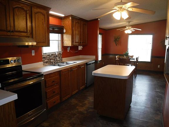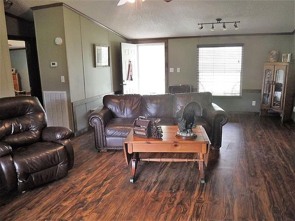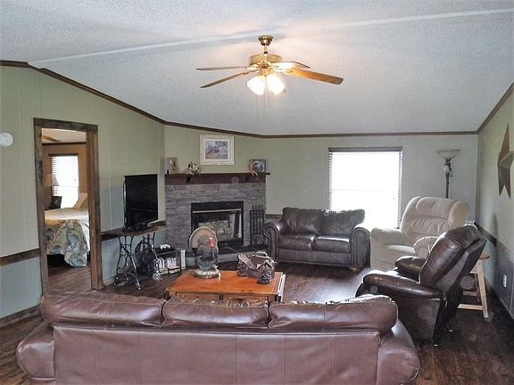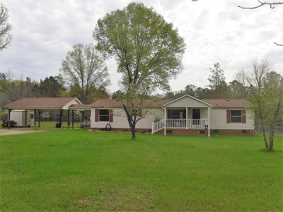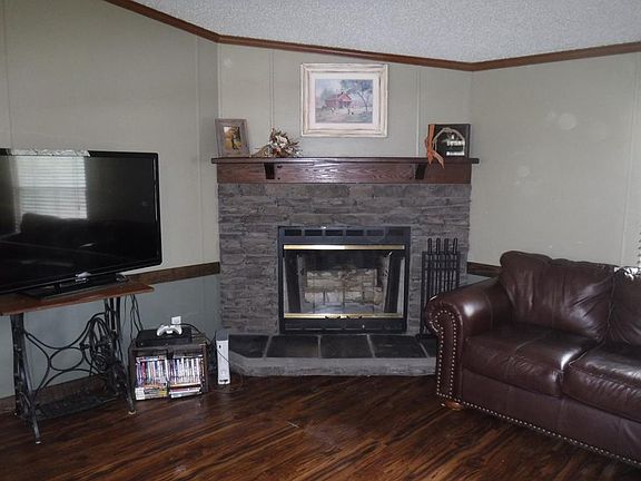 Move in ready!! 3 bedroom, 2 bath mobile home with lots of extras. Large family room with fireplace, eat-in kitchen with lots of counter space, separate shower and garden tub in master bath, double carport, and fenced back yard. Private setting on 5 wooded acres.