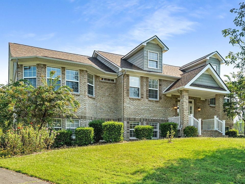 Discover this stunning all brick hilltop retreat just outside the city limits, offering the perfect blend of modern comfort, privacy, and convenience to top shopping, dining, and nearby brand new schools. Nestled on a peaceful cul-de-sac with breathtaking rolling hill views and seasonal lake scenery, this beautifully landscaped property is designed to impress. Step inside to a welcoming foyer with rich hardwood floors leading to a bright, open living space where natural light pours in and every detail feels inviting. The gourmet kitchen boasts granite countertops, custom panel cabinetry, a spacious pantry, and seamless flow into the dining and living areas - ideal for entertaining or quiet evenings at home. The primary suite is a true sanctuary, featuring a whirlpool tub, dual vanities, and serene views, while three additional bedrooms and three full baths provide plenty of space for guests or a growing household. Relax year-round on the screened porch with its soaring arched ceiling and sky views or step onto the back deck to enjoy Tennessee sunsets surrounded by a fenced back yard, privacy, and wildlife. The lower level offers an office, rec room, and additional living space, while outside you’ll find apple, pear, and peach trees, and blueberry bushes, along with vibrant seasonal blooms. With a new HVAC (2025), new roof (2023), ATT Fiber (2025), new washer (2025), an oversized 2-car garage plus covered parking for a 3rd vehicle, AND an interior storm shelter in the lower level, this home is truly move-in ready. The community adds even more value with a private, gated 12-acre lake with fishing, a pavilion, nature trail, and year-round events. Don’t miss your chance to own a private oasis with city convenience - schedule your showing before it’s gone!