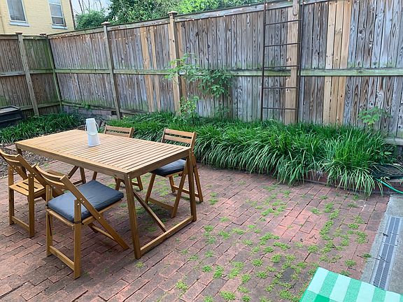 Very recently renovated modern spacious one-bedroom English Basement apartment with living room, breakfast room, fenced private back yard great for BBQ and relaxing, high ceilings, lots of light, large built in bookshelf and good closet space. Kitchen with all new Bosh washer & dryer, Bosh dishwasher, refrigerator, garbage disposal, microwave, oven/range -- Gas, granite counter-top, kitchen tiled floor, recessed lights, and cable ready. Bathroom with new water saving dual flush toilet and new vanity Hardwood floors, hot water radiator gas heating, ceiling fans, recessed lights and, 18000 BTU window AC unit. Less than two blocks from Capitol South Metro, Library of Congress, United States Congress, Senate Office Buildings, a House offices, a block from restaurants/coffee shops (Starbucks, Good Stuff Eatery, Pret A Manger, We the Pizza, etc.), Eastern market, and stores, and steps from several parks. Ample street Parking Utilities -- 100% electric (separately metered), 25% gas and 25% garbage and water/sewer RUB Available - April 1, 2025 Cat's Considered and No Smoking Cats $200 one-time fee $25 monthly pet fee 2 pets maximum We do not accept dogs
