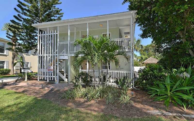 What an amazing duplex? This not only provides income for an investor but can also be a fabulous get-away for the owner. Completely updated with wood cabinetry, large tile and newer carpet. The Key West styled verandas provide a charming place to relax. The property has a magnificent Banyan Tree that provides shade on the side of the units where there is a hammock, decking for an eating area and BBQ, as well as a Tiki Bar. The path leads to a heated pool. This duplex is so well located for a very short walk to the beach and Siesta Key Village. There are 2 units each 2 bedrooms, and two baths and each has its own utility room. All windows replaced in 2007 with hurricane windows. Short term rentals allowed....Handled by Banyan Resort Mgmt.