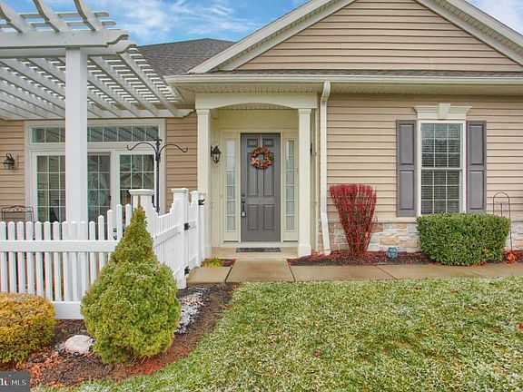 Sell your snow blower! This home in this 55+ community has been beautifully maintained and is ready for you to move into it. High ceilings with thick crown molding, tall stately doors, granite counter tops, a tiled shower and a wonderfully open layout are some of the features you?ll enjoy inside, along with the toasty warm gas fireplace in the living room and the classy tray ceiling in the master suite. Outside offers a two porches, and one has a pergola and cute fence surrounding it. Also you?ll find an attic space where the gas furnace and a/c are located and it also offers storage space. The community streets are great for walking as the main loop is about 8/10 of a mile, and walk all the cul-de-sacs and walking paths and add up those miles. Enjoy the community center when you want to (and allowed to) have larger meetings as well as the pool that is there.