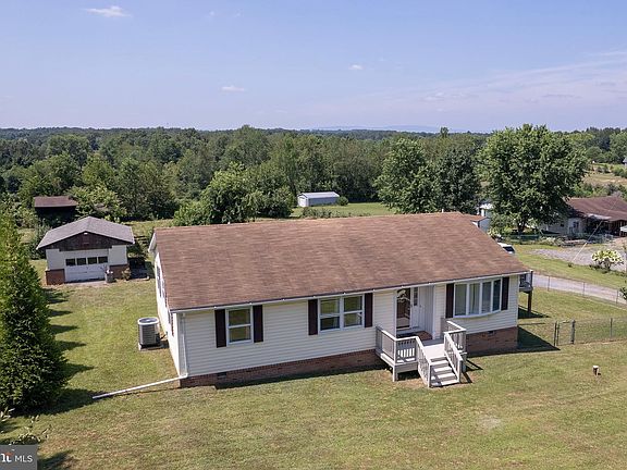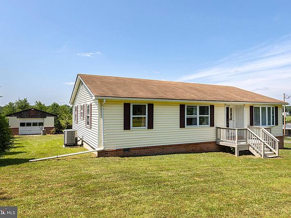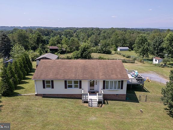 Bring the animals! Your new farmette awaits! Adorable 3 bedroom, 2 bath rancher on 5.58 acres with NO HOA! Inside, you'll find 1728 sq. ft. of living space complete with formal dining room, large living room with wood beams on the ceiling. Large rear deck for entertaining and a fenced in yard. One car detached garage with new roof. There are apple trees in the front yard and blueberry bushes beside the detached garage. Large rear field with a barn and pond.