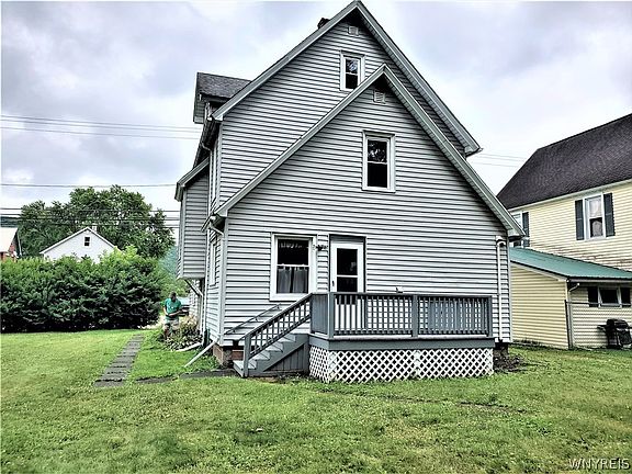This well maintained home has so many pluses. . It is off the reservation and on Salamanca electric. Over the past few years the owners have put in new windows, roof, new wiring, hot water tank and a full bath on the main level. Oak wood floors in the living & dining area. The kitchen has an abundance of cabinets and a back door that takes you out to the back deck and a beautiful back and side yard that is perfect to enjoy all Summer and Fall. Natural landscaping of trees and flowering bushes gives privacy to the back and side yard. Spacious bedrooms plus a 4th bedroom in the walk up attic. Full dry basement
