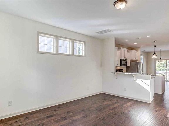 Down Master with private bath! This beautiful small pet friendly home is located in the gorgeous Riverwood Community where live, work, play is truly embodied. The first floor walks into an open floor plan, with nice espresso hardwoods, granite counter tops in kitchen with updated stainless appliances, powder room and laundry (washer and dryer provided). Upstairs you'll find two additional rooms and full bathroom. Nice size lot, rear deck for enjoying those soon to be here summer evenings. Access to the community pool (indoor and outdoor), gym and lots of dining and shopping within walking distance. Eight miles to Knightdale. Less than five miles to I-87, makes for easy commuting. Owner pays for association dues. Tenants to pay for all utilities and lawn care. Pet friendly, small dogs and cats okay; fees apply. Applications available online at rogerspropertiesnc.com.