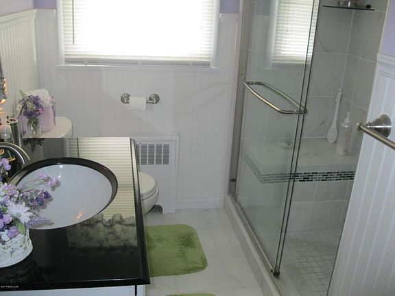 Neat as a pin, 3 bedroom cape cod with stone front, garage & carport, sunroom, finished basement with toilet & shower, new kitchen remodel with corian counters, tile floors, new bath with granite sink surround, walk-in shower, with glass sliding doors. New garage door.