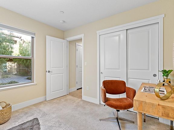 Stunning 2018-built Townhome at a prime location in sought-after Palmero In Mountain View. This beautifully built 3 bedroom, 3.5 bathroom has 1883 sqft of living space with an open modern concept. Chefs kitchen features SS appliances, quartz countertops, abundance of cabinetry & large island w/ bar seating area. Private patio off the living area offering quintessential indoor/outdoor living. 3 spacious en-suite master bedrooms w/ full bath, including the ground-level bedroom. Central A/C, dual pane windows, 2-car garage and more. Great location, 8 min bike ride to Google, close to shopping, dining, and Permanente Creek Trail. Easy access to HWY 237/101/85 and light rail. Come and see!