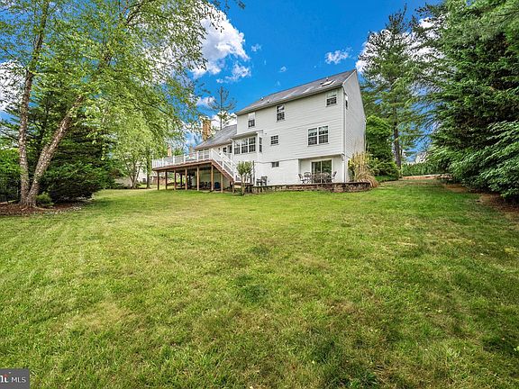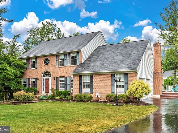 Lovely brick front colonial in desired community. Features 3 finished levels with almost 3900 sq ft of finished living space, side entry 2 car oversized garage, walk-out lower level with patio, huge deck to enjoy the outdoors and wildlife, open floor plan and lots of natural light. Main level boosts hard wood floors throughout, two story foyer, large eat in kitchen w/new granite countertops, family room off the kitchen with gas fireplace, formal dining room, formal living room, office/den and powder room. Upper level has brand new carpeting throughout, primary suite with bath and walk-in closet, hall bath and 3 additional nice sized bedrooms. Fully finished lower level has full bath, rec room area that walks out to wonderful patio, built in bar area and game room area, also has additional room that can be used a bedroom/workout room/additional office. HVAC was replaced with Bryant system in 2018. Walking distance to park w/walking trails, pond, ball fields and playground equipment. You don’t want to miss this one.