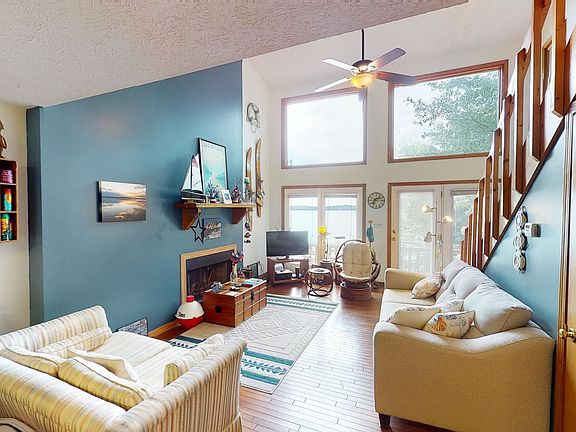Enjoy a piece of paradise in this roomy 2 BR 2.5 BA condo with mesmerizing view of the lake. Condo boasts a flat manicured yard leading to your 2 boat slips & comm. dock. 1 boat lift included. Great for full time living or weekend getaways. End unit with plenty of deck space to host family & friends. A bonus room that kids find great to sleep/play in. Full lake view from great room & kitchen area. Partially furnished. . Close to Mill Creek Marina. Check out the 3-D virtual tour or Drone video.