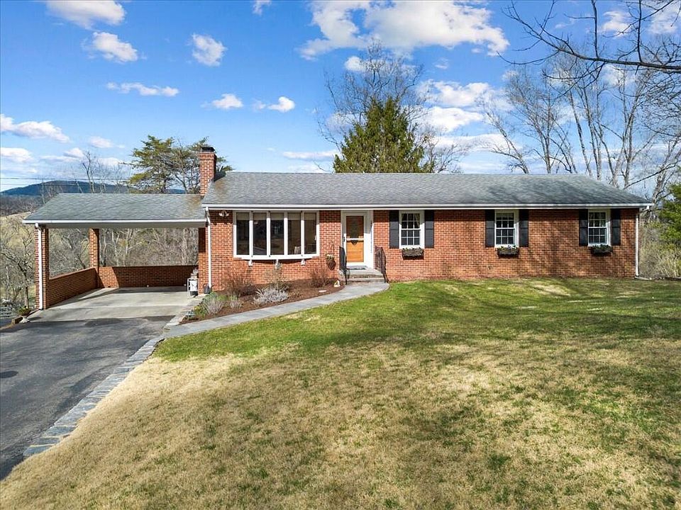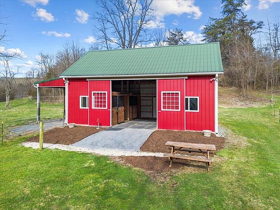 Calling all horse enthusiasts! Make your dreams a reality! Perfect hobby farm w/custom-built barn measuring 24x36x12, tack rm, 3 stalls & center aisle w/rubber mat footing, ceiling/stall fans, water & electricity. Attached covered run-in 10x24. 2nd barn 55x31 w/loft, 8 stalls & tack rm. Riding ring 170x80 w/footing of 1'' packed crusher run, 3'' stone dust & 2'' sand. Jumps/drag included! 1770' of woven wire fencing, & electric fence. 3BR, 2BA brick ranch w/hardwoods, living rm fireplace, remodeled kitchen w/custom cabinets & quartz countertops, spacious family rm w/woodstove & new carpeting! Primary bed w/BA updated 2023! Stunning mountain views! Very convenient, 6 mins to I-81, 5 mins to US-220N to Greenfield Park horse trails, close to Virginia Horse Center in Lexington. Must See! 3 primary pastures fenced & ready for your horses. Perfect for rotation & pasture/field management. Beautiful existing flower beds for those with a green thumb. Spaces for those who wish to have a homegrown garden. Lots of parking space. Convenient to all area amenities...restaurants, Daleville Town Center, grocery stores. Recent updates. Much loved & well-cared for family home.