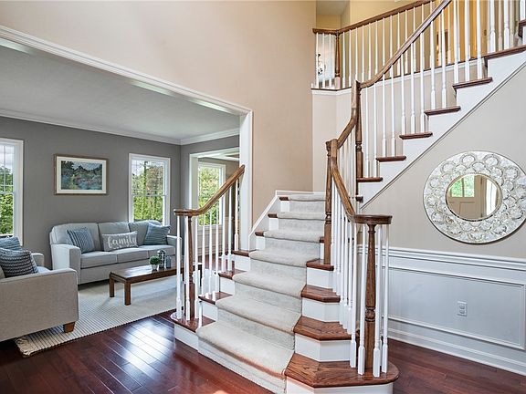 Welcome to this stunning Heartland home on a serene cul-de-sac in Myoma Woods. The covered porch w/ large pillars leads to a level entry & cascading staircase, opening to your living & dining rooms adorned w/ wainscoting, crown molding, & a tray ceiling.The chef’s kitchen features an oversized island w/ granite, pendant lighting, a tiled backsplash, & Jenn Air appliances, including a gas cooktop & double wall oven. The bright morning room w/ a vaulted ceiling opens to a two-tiered deck overlooking an expansive fenced yard w/ a backdrop of mature trees.The extended family room boasts a cozy fireplace. Laundry room, powder room, & large two-car garage complete this floor. Upstairs, four guest bedrooms & a full bathroom accompany the luxurious owner's suite featuring double walk-in closets & a stunning en-suite bath w/ a soaking tub, walk-in shower, & double sinks.The finished walkout lower level showcases a huge game room, theatre room, & versatile den ideal for a home office or gym.