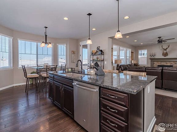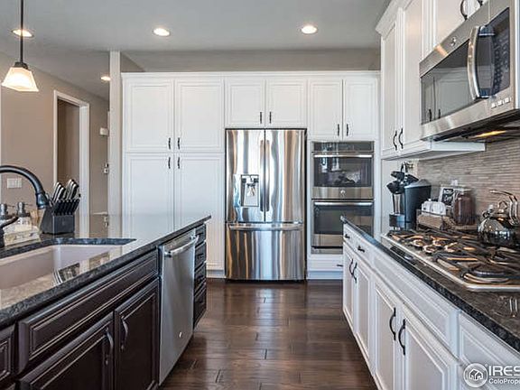 This home really has it all, beautifully appointed, amazing mountain views and great location with open space on 2 sides. The kitchen is a chefs dream with White cabinets and an Espresso stained, huge center island. Hand hewn wood floors throughout the main floor. The sweeping staircase is the perfect photo op for those special events yet to come. Watch the sunset from the covered deck when it's warm or on the patio with gas fire pit on cool nights. A garden lvl basement is yours for expansion.