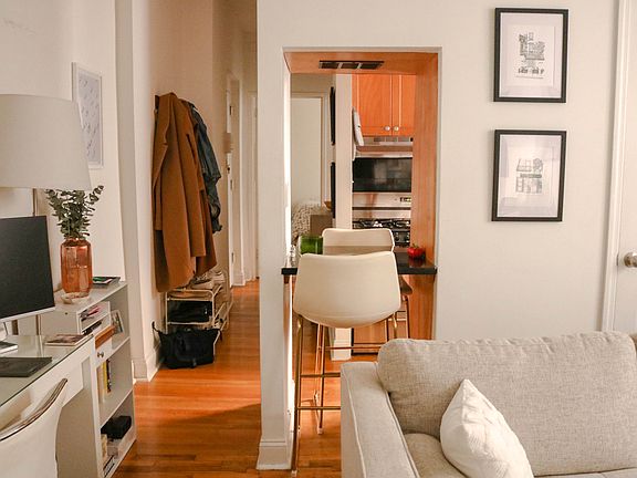 Plus, the windowed-kitchen features a dishwasher and breakfast bar open to the living area. The windowed-bathroom covers all your basic needs. The bedroom does fit a queen-size bed. That's about it. Come see this steal of a spot. Note: 4th floor of a walk-up and an easy board application is required.