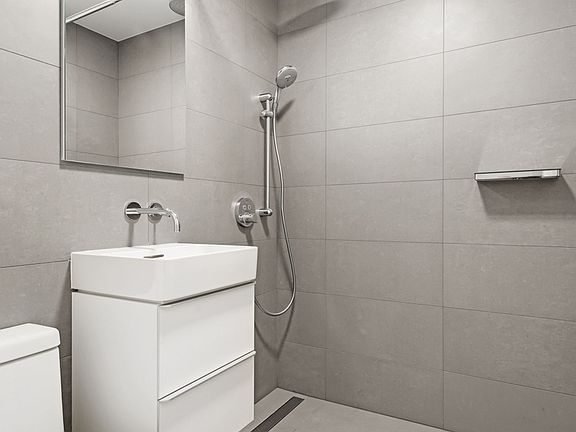 Renovated one-bedroom apartment in a doorman building with elevator and laundry in Gramercy Park. Apartment features - in unit laundry - dishwasher - microwave - central air conditioning Building features - onsite laundry - elevator - concierge - pets are allowed Photos are of a different apartment with similar finishes.