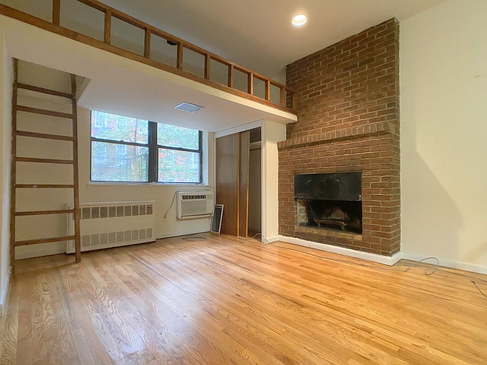 Experience prewar charm in this spacious loft-style studio, featuring a decorative fireplace and a recently renovated kitchen with a raised dining area perfect for entertaining or cozy dinners at home.