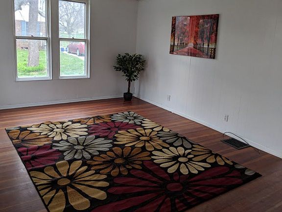 1600 sq ft home with 4 bedrooms, and 2 bathrooms. Living room, kitchen, front porch, and a shed.