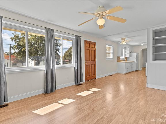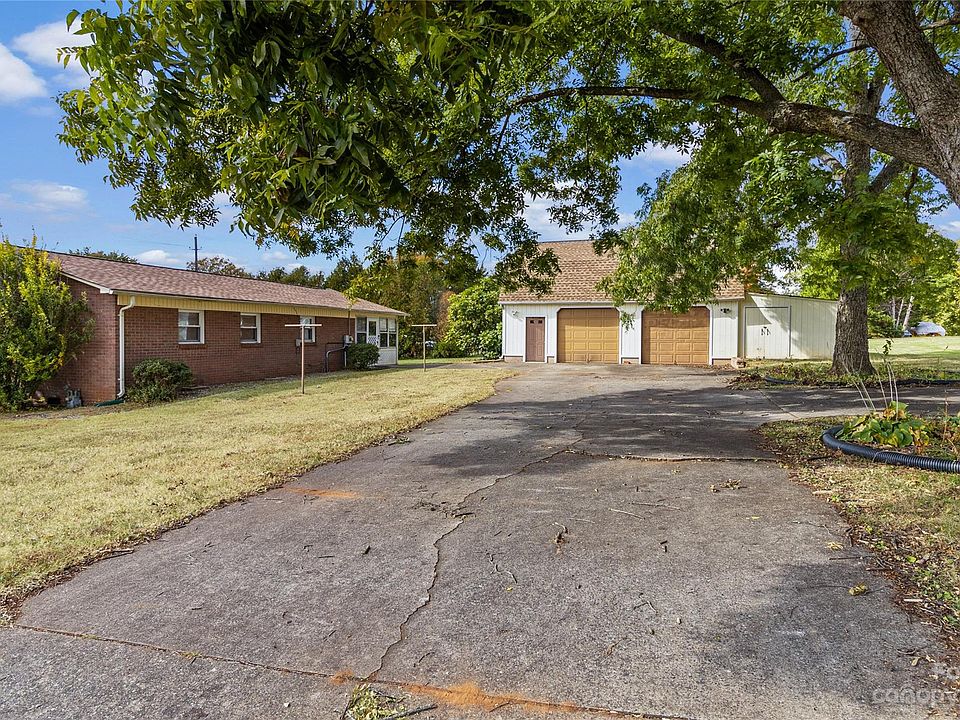 Cozy 3 bedroom ranch with HUGE 2-story detached garage on a double lot in Maiden. Newer roof, HVAC and water heater! Updated laminate wood flooring throughout. Large laundry room with great storage & spacious sunroom (additional 157 sq ft)! Washer & Dryer and Refrigerator convey. Windows have also been replaced in the last 5-7 years. Detached garage (wired & plumbed) has a staircase upstairs to a large unfinished area with tons of potential! Oversized driveway to accommodate plenty of parking. Great location in Maiden with low taxes, town of maiden utilities & NO HOA!