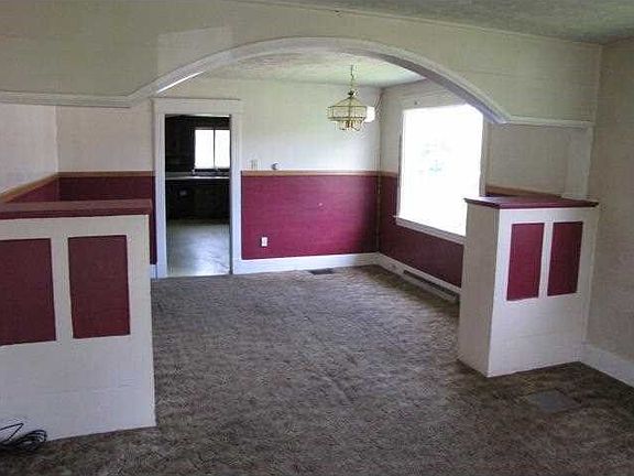 1.5 story Cape Cod style home with full covered front porch, 2 car detached garage located on 1/2 acre of land. Large living/dining room combo seperated by bookcases and an arched ceiling divider. Birch kitchen cabinets. 2 full baths. (Please note: square footage of building area and lot size are estimated.)