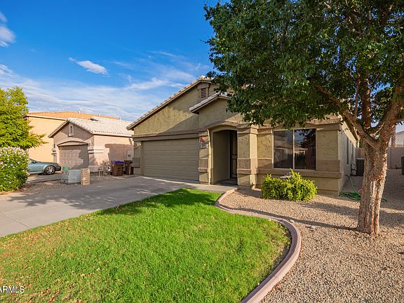 This delightful 4-bedroom, 2-bath residence in Johnson Ranch is the one you've been searching for! Discover a welcoming living/dining room with a neutral palette and a harmonious mix of soft carpet and tile flooring. The great room features sliding doors leading to the backyard for seamless indoor-outdoor living. The kitchen is equipped with ample wood cabinetry with crown moulding, essential built-in appliances, and a two-tier peninsula with a breakfast bar for casual meals. Retreat to the cozy main bedroom, complete with an ensuite with dual sinks and a convenient walk-in closet. Outside, the backyard offers a covered patio and abundant space to create your dream oasis. Make this home yours today!