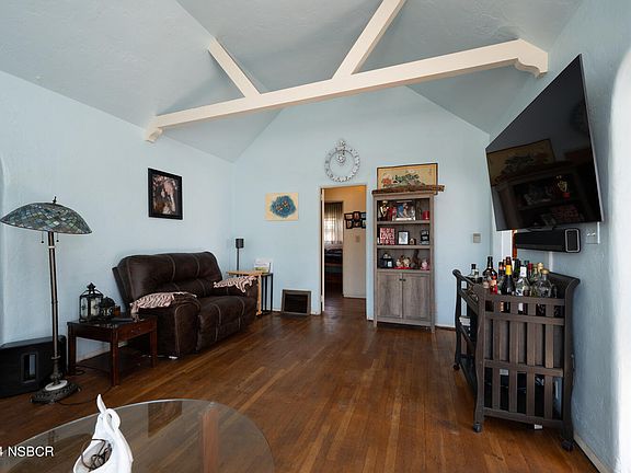 This charming corner property exudes vintage appeal with its high vaulted ceiling and exposed trusses. The 1,320 sq. ft., 3-bedroom, 2-bath home boasts a welcoming living area with wood floors, a tile-accented fireplace, and elegant arched doorways. Low maintenance landscaping and a private backyard with a separate bonus room, perfect for use as a gaming room, office,/workshop or ADU conversion. Ready for its new owners to make their own and reap the potential this property holds.