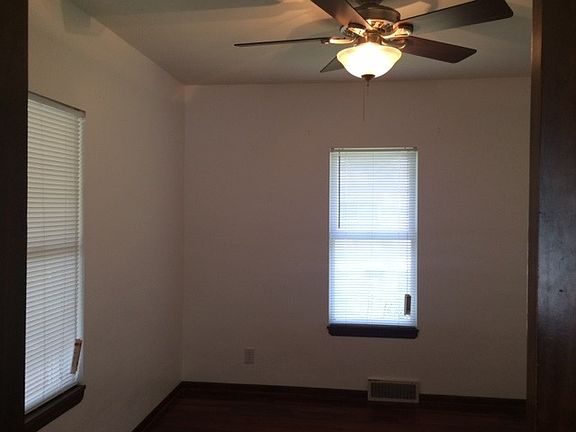 Nice 3 bedroom 1 bath home. Kitchen has walk-in pantry and eating area with breakfast bar. Ceiling fans in all rooms. New wood laminate floors in most rooms on first floor. Newer roof, newer siding and newer windows all put in around 2009. Great corner lot. Two car detached garage. First, Security and $250.00 non refundable pet deposit.