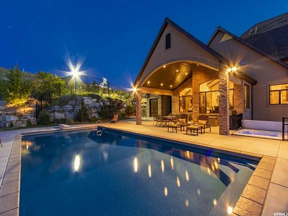 You can feel like you're on vacation everyday. Enjoy this unique home 15 mins from downtown SLC and the airport. 60 mins to 10 different ski resorts. Quick access to the Eaglewood Golf Course and Bonneville shoreline trail system for hiking and mountain biking. Unobstructed views of the Wasatch Mountains and the Great Salt Lake. You'll love the pool, dinner, fire pit or basketball game with a view. This majestic brick and stone rambler has impeccable quality and is nestled on a mountain ridge at the end of a circle. See Attached Feature List