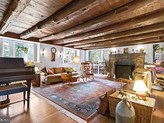 Don’t miss this chance to own a piece of local history in Everybody’s Hometown of Media. 321 East Rose Tree Rd is a 4 bedroom, 2 full bath single family home that has been very well maintained/updated and is a stone's throw from everything! The character and charm of this home dates back to 1862 and was originally used as a barn. Approach this home by way of the oversized private driveway off Old Orchard Rd. with space for several cars and pass through the stone patio area on your way to the front door. Through the entrance is an enclosed solarium with many glass french doors to let in the light and stone flooring that leads into a large living area with a wood-burning stone fireplace. The oversized living room features the original wood beamed barn ceiling, lighted sconces, built-in bookshelves and gorgeous hardwood floors that are throughout the majority of the home. You can access the dining room through the solarium or off of the living room. This room is accented by deep windows and hardwired sconces. Off the large dining area is the kitchen offering white cabinetry for plenty of storage, formica countertops, and modern appliances. Through the kitchen is the mudroom with the bonus first-floor water closet, laundry, and exterior access. A rear staircase is also found here that leads to the 2nd and 3rd floor and access to the basement, however back in the living room is where you will find the main staircase to the 2nd floor. The 2nd floor landing showcases a beautiful oversized arched window with views of the stunning rear yard. On this level are 4 bedrooms each with yellow pine wood flooring and generous sized closets. A bonus room (that could be used as a nursery, home office, sitting room, etc) connects to both the hallway and the 4th bedroom. 2 full hall bathrooms, one of which connects to the primary bedroom, complete this level. This home has potential for additional living space on the 3rd floor where there is currently a 3rd bathroom that hasn't been used for some time, as well as two generous sized, semi finished rooms and a large amount of storage space. The exterior of the home includes a level backyard punctuated by 13 varieties of mature trees on the property, and a broad variety of shrubs and groundcover that provide a beautiful assortment of colors and textures throughout the spring, summer and fall. The property is made private from the street and neighbors with an 8 ft fence. At the end of the driveway is a 2 car detached garage with loft storage, and a side yard area. Updates include 200 amp electrical service, newer cedar roof, a Weil-Mclain boiler, Andersen windows throughout, central air conditioning and more. Truly located in the heart of Media only minutes from Media Borough for community activities like holiday parades and open air dining and just a few houses away from Rose Tree Park with a free summer concert series and Holiday lights display. Located with easy access to Rte 1 only minutes away for connection to all major roads.