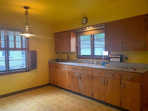 One story, two bedroom, one bath brick home with attached one car garage, and full basement. Home features a fireplace and large eat in kitchen. There is an enclosed back porch between the house and garage.