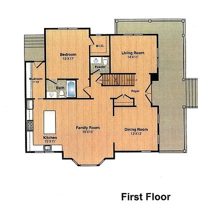 - Level 1 Rooms: 1Bedroom, Foyer, LivingRm, FamilyRm, Kitchen, DiningRm, BathMain, Porch, PowderRm, OutEntrn, MudRoom